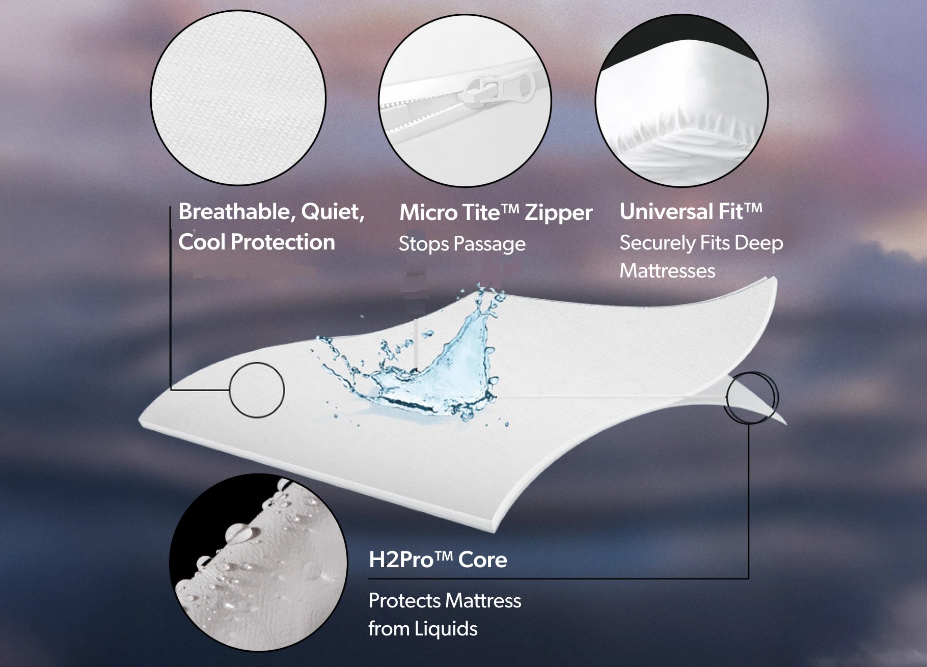 The Encase HD 360° Mattress Protector offers full-coverage protection for every side of your mattress. Designed to shield against bed bugs, spills, allergens, and dust mites, it’s ideal for sensitive sleepers or anyone who wants top-tier peace of mind. The unique zip-off top makes laundering easy without needing to remove the entire encasement — because convenience matters, too.