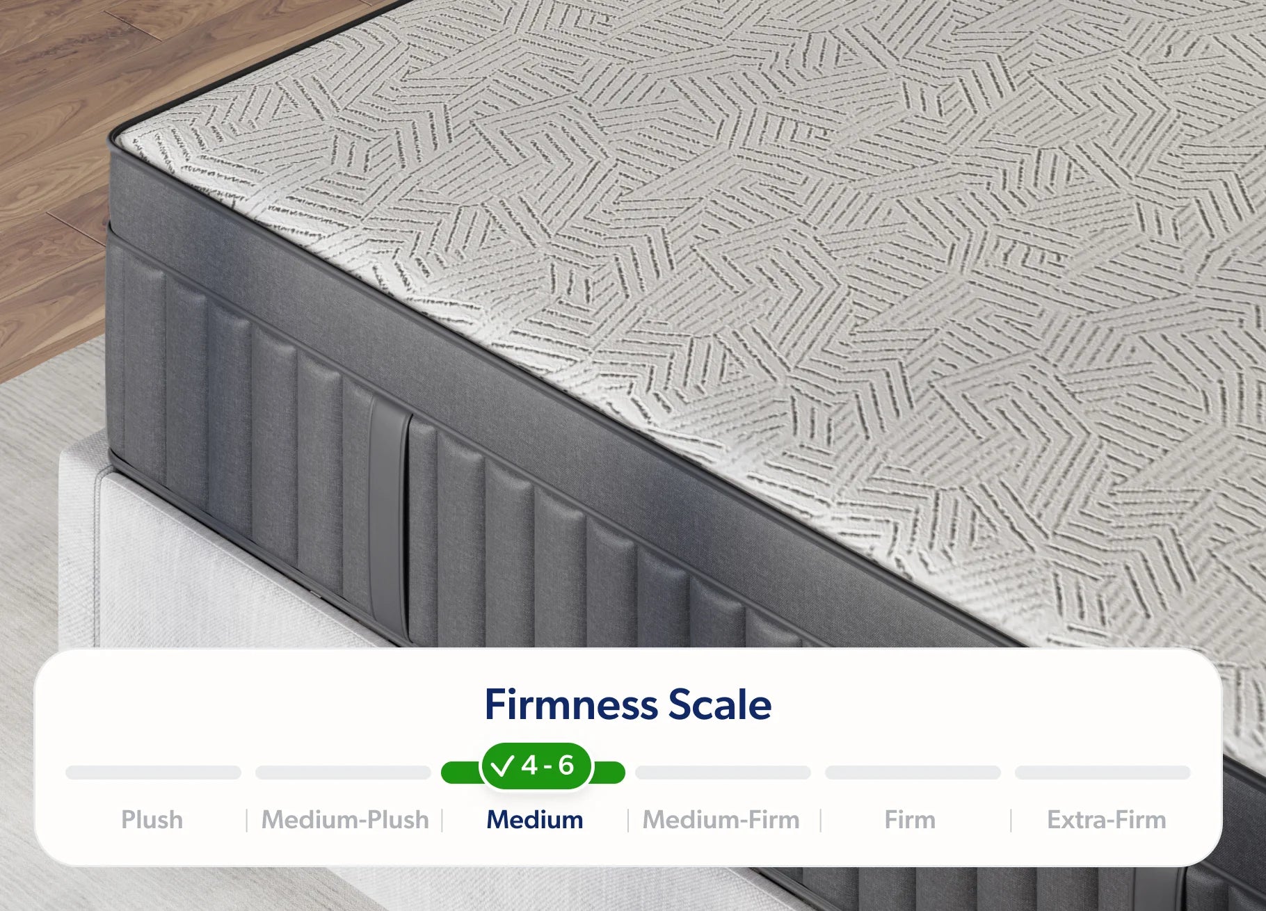 A medium feel mattress strikes the perfect balance between the softness of a plush mattress and the rigidity of a firm one. It offers enough cushioning to relieve pressure points on your hips and shoulders (ideal for side sleepers) while maintaining sufficient support to keep your spine properly aligned (great for back and stomach sleepers). The NXT 2000 Medium is an excellent choice for couples with different sleep preferences and is our most recommended comfort level for the majority of sleepers.
