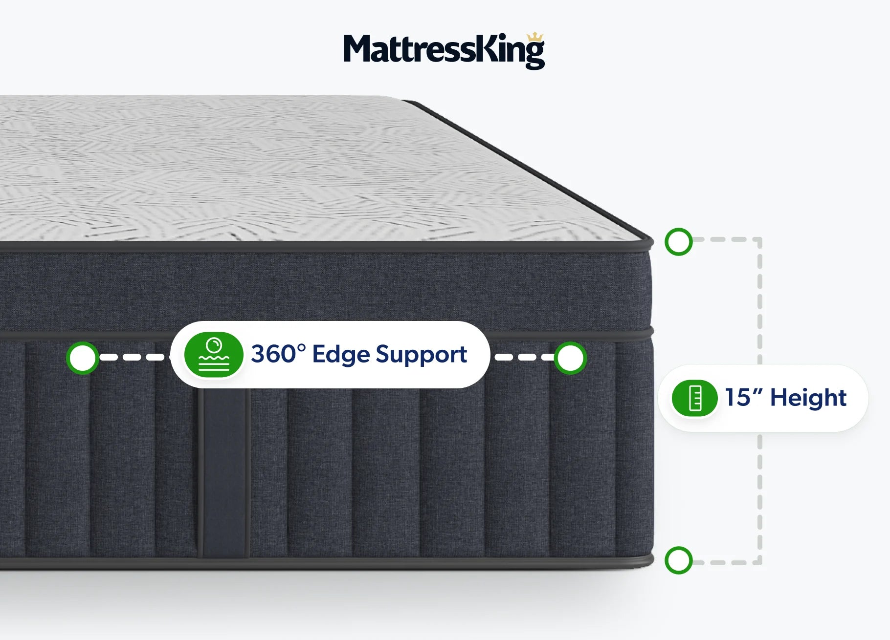 - 8" EvoWC5 5-Zoned Pocketed Coils: Over 1130 individually-wrapped innersprings for targeted, dynamic support with Reinforced Edge Perimeter and Zoned Lumbar Support